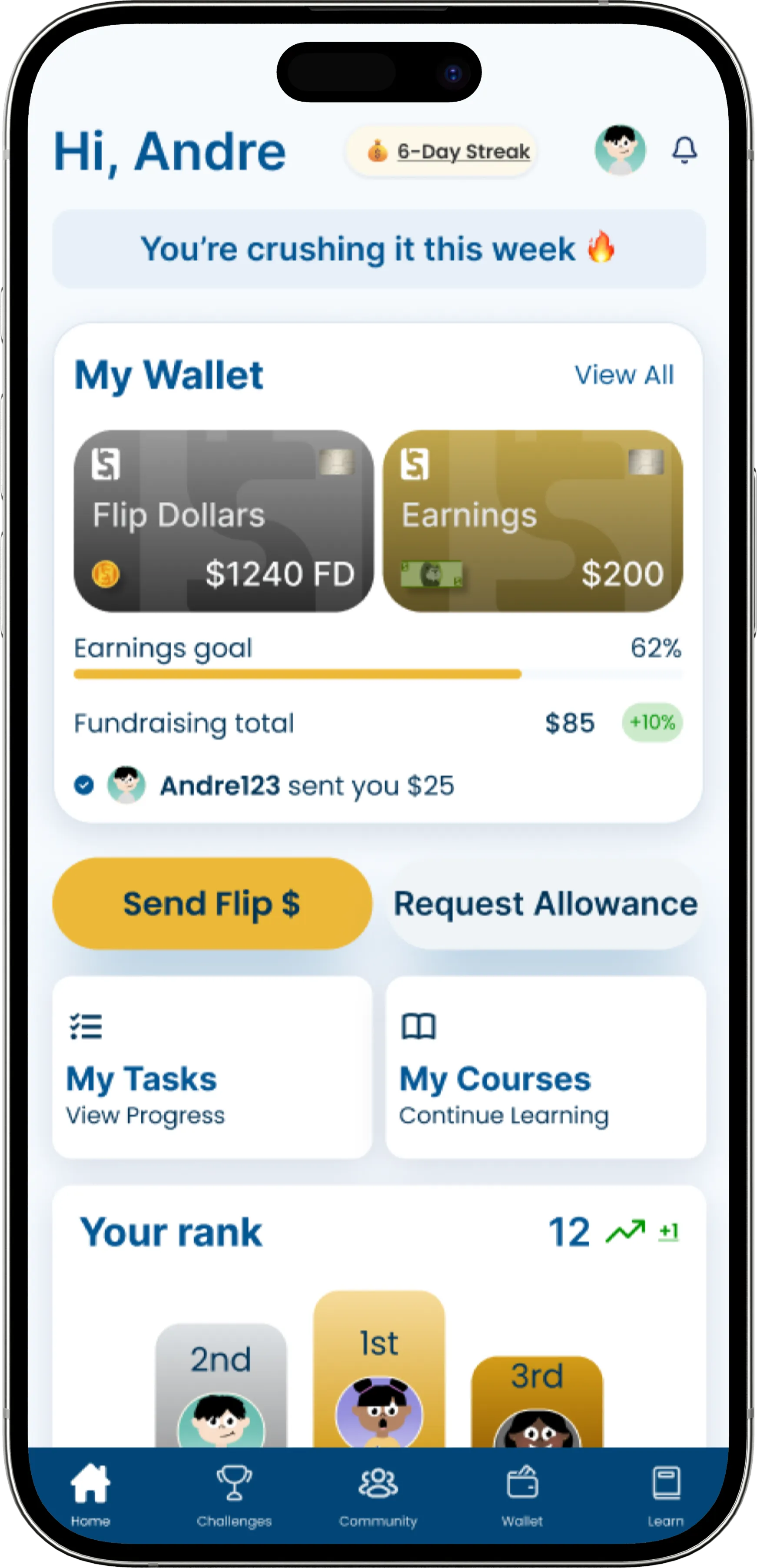 Invite friends, share Flip Dollars, and grow your money skills together.